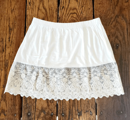 Girls Half Slip. Perfect to wear under a dress or skirt to make the skirt opaque & helps prevent static cling. Lengthen a too short dress with this lace slip. The elastic waist band makes it easy to adjust higher or lower on the waist according to your needs.